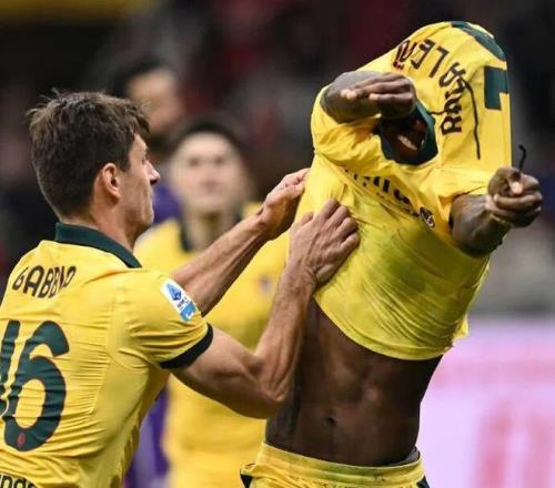 第86分钟莱奥点球破门助米兰反超,之后他想脱衣庆祝,被加比亚拦截。